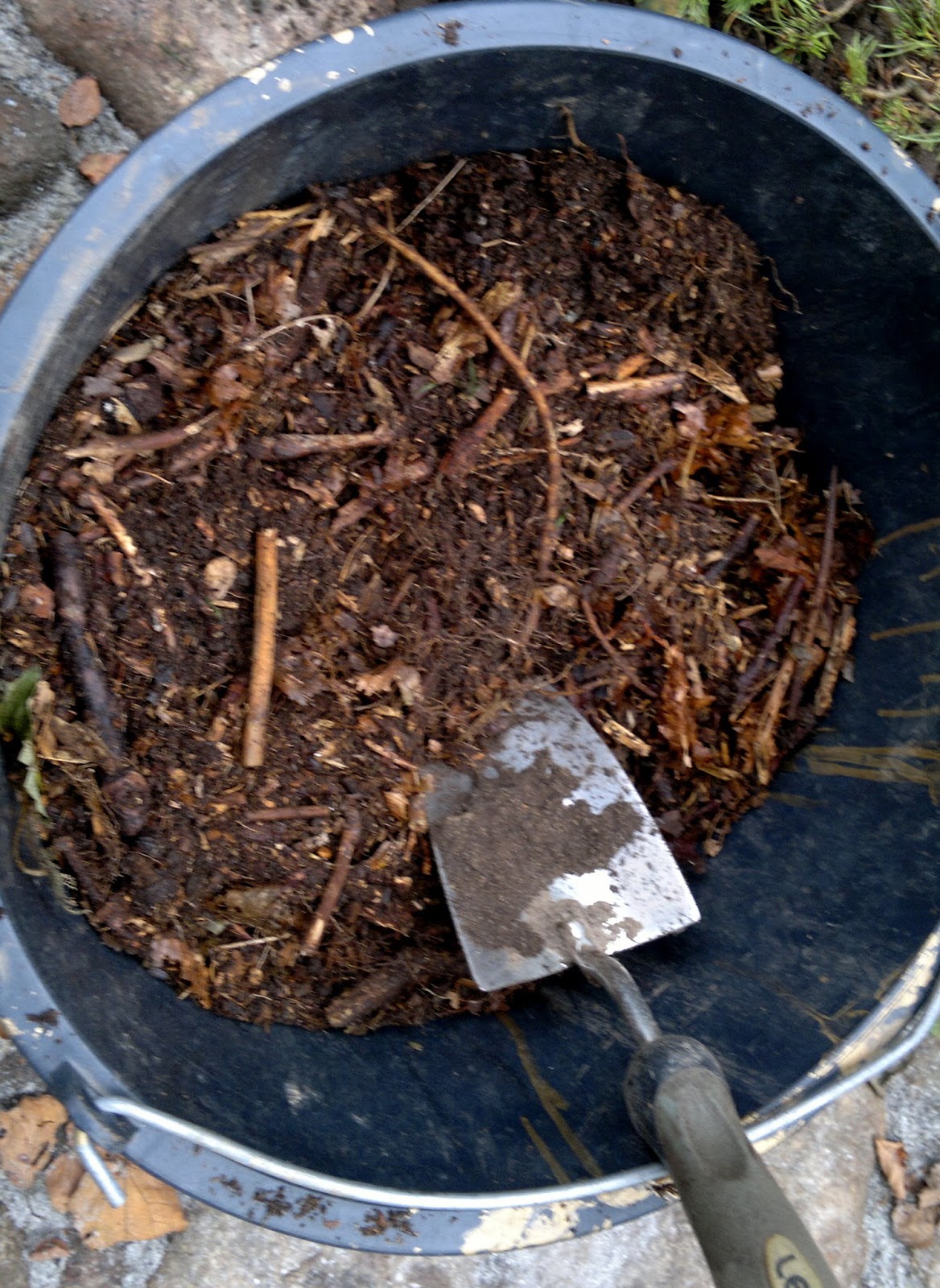 September er en fin måned at plante om og ud, især nu hvor det også har regnet og vil regne. Mit første billede skal vise havens guld, som vi henter omme bag ved den gamle bøgehæk, og som godt nok ikke skinner, men er guld værd i et plantehul.