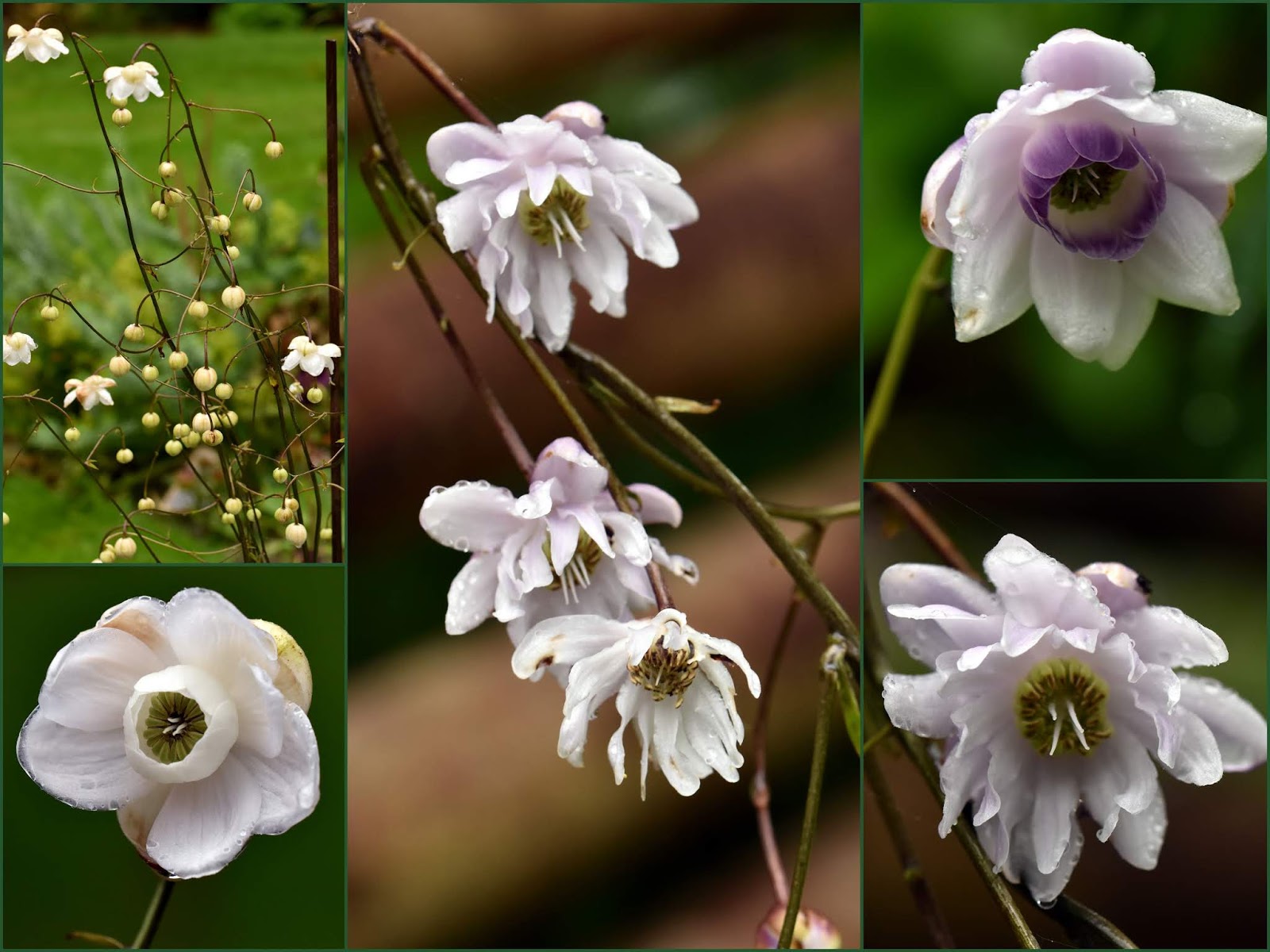 Sensommeren forbinder vi nok især med glødende, brændte farver og lette og graciøse græsser, der rasler i vinden; men den lette og luftige anemonopsis med hjemsted i Japan er i virkeligheden en af de allermest graciøse planter, denne årstid kan byde på. Blomsterne beskrives oftest som voksagtige, stænglerne er stive, men vælter let, så som bedplante i traditionel forstand fungerer anemonopsis ikke perfekt. Det er desuden vigtigt at placere den sådan, at man let får adgang til at beundre blomsterne, altså forholdsvis tæt på, hvor man færdes. Vi har tre varianter: til venstre "White Swan", i midten og nederst til højre den fyldte "flora plena" og endelig øverst til højre selve arten "macrophylla", som i mine øjne også er den smukkeste.